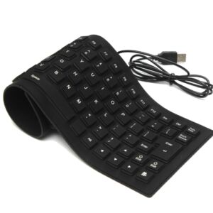 Clavier Flexible USB Keyboard au design ultra moderne Pratique et astucieux Waterproof étanche et Enroulable Clavier AZERTY avec pavé numérique Compatible avec Windows 7 Vista XP / Mac / Noir.